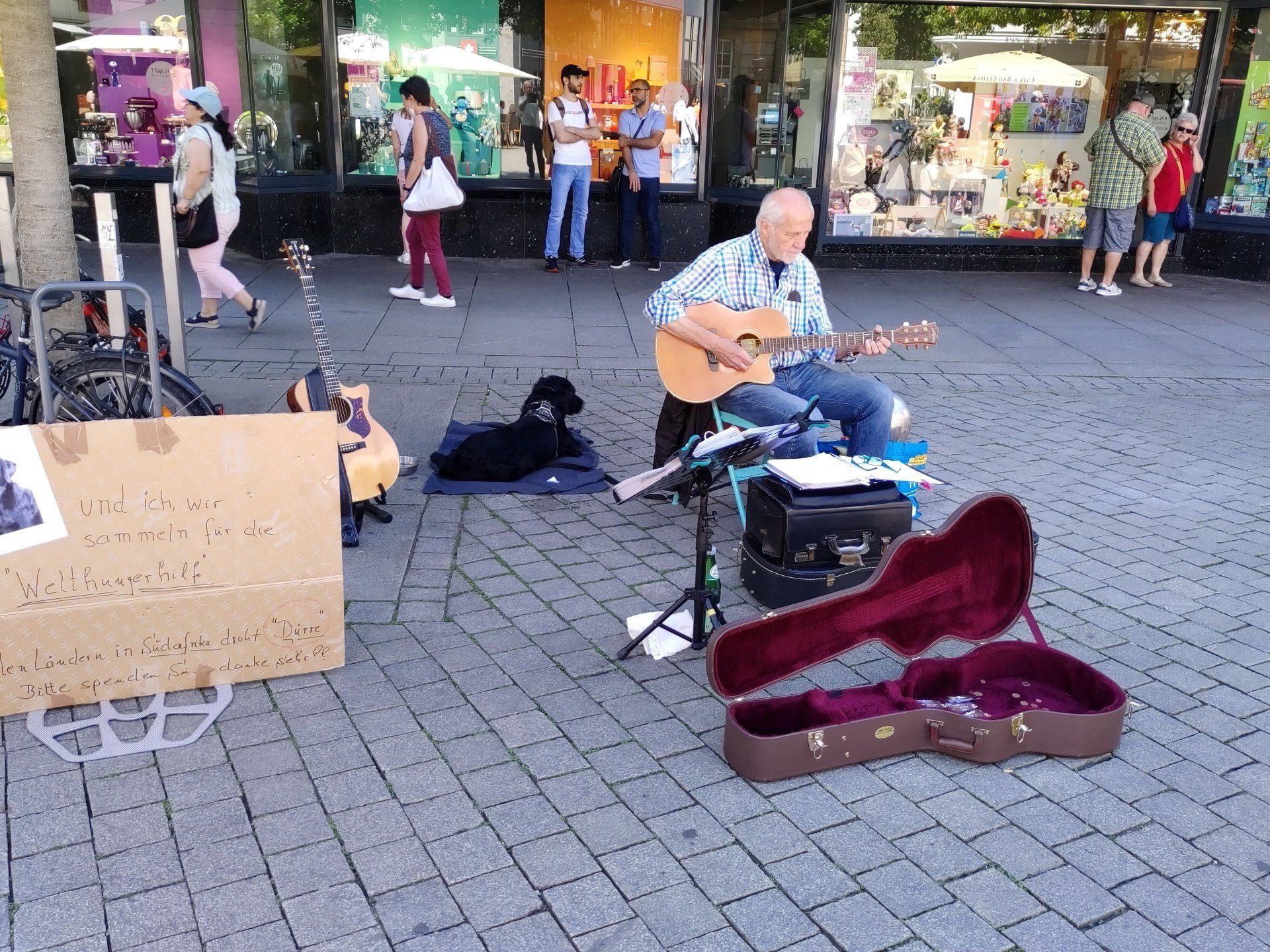 Ostersamstag 2022, Münster am Domplatz, eine Sammlung für die Welthungerhilfe, Dank an alle die gespendet haben..., es sind 63 Euronen zusammengekommen, jeder "Taler" zählt.... Lucky hat in a-moll gebellt...., es hatte sich noch ein Harpspieler dazu gesellt, das war cool, leider kein Photo von diesem Gastauftritt. 🐶 😎